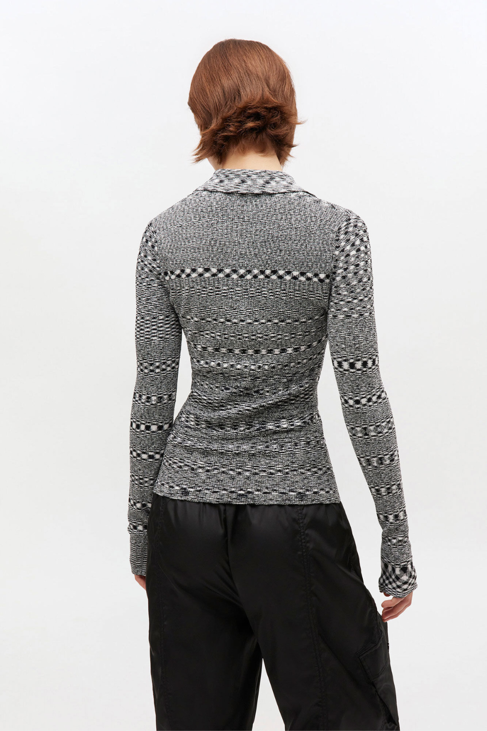 • Sort/hvid jacquardmønster med grafiske tern og striber