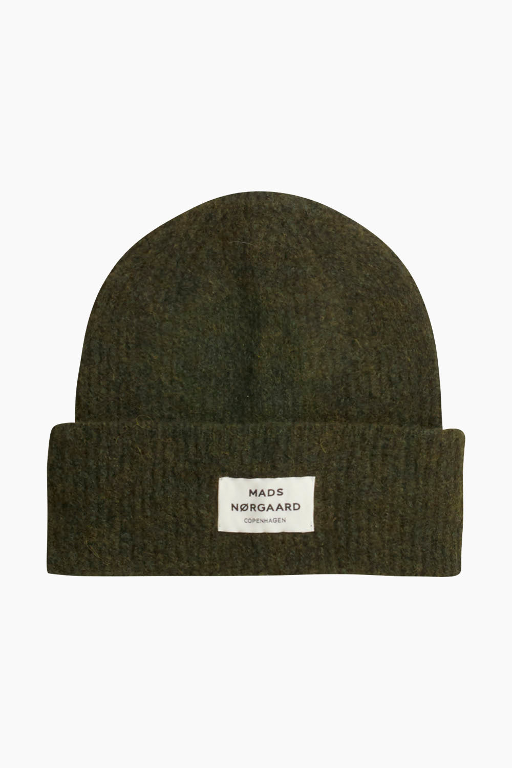 Vintermjuk Anju är en klassisk hatt i utsökt mörkgrön färg. Det är gjord i en ull och Alpaca-frisättning som gör den vackra varma och mjuka att bära. Hatten är ribbsticka och har en slät med en syt Mads Nørgaard Köpenhamnslogotyp i vit på framsidan.