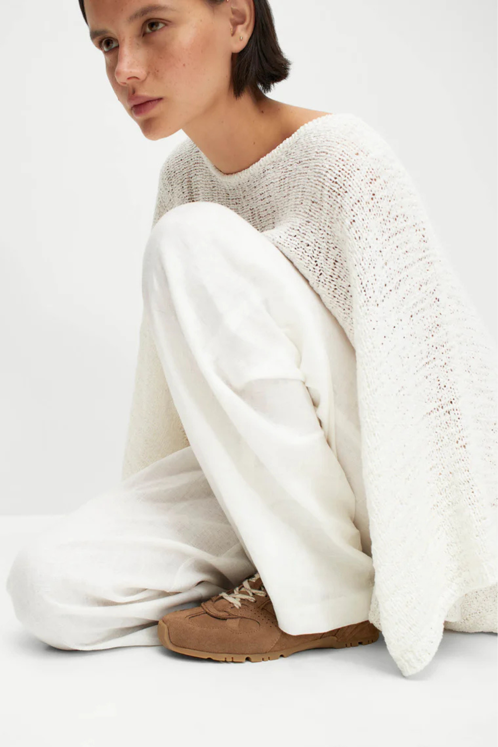TB.56 sneakeren i brunt ruskind er designet med en sofistikeret multilayer-konstruktion, hvor overlappende paneler skaber dybde og et moderne udtryk. Den lave silhuet kombineret med den brune gummisål giver et cool og urbant look, mens de marmorerede cremefarvede snørebånd tilfører en elegant kontrast. Klassiske detaljer som synlige stikninger og diskrete logopræg fuldender designet og understreger den høje kvalitet. En stilren sneaker, der nemt kan styles til både afslappede og mere trendy outfits.