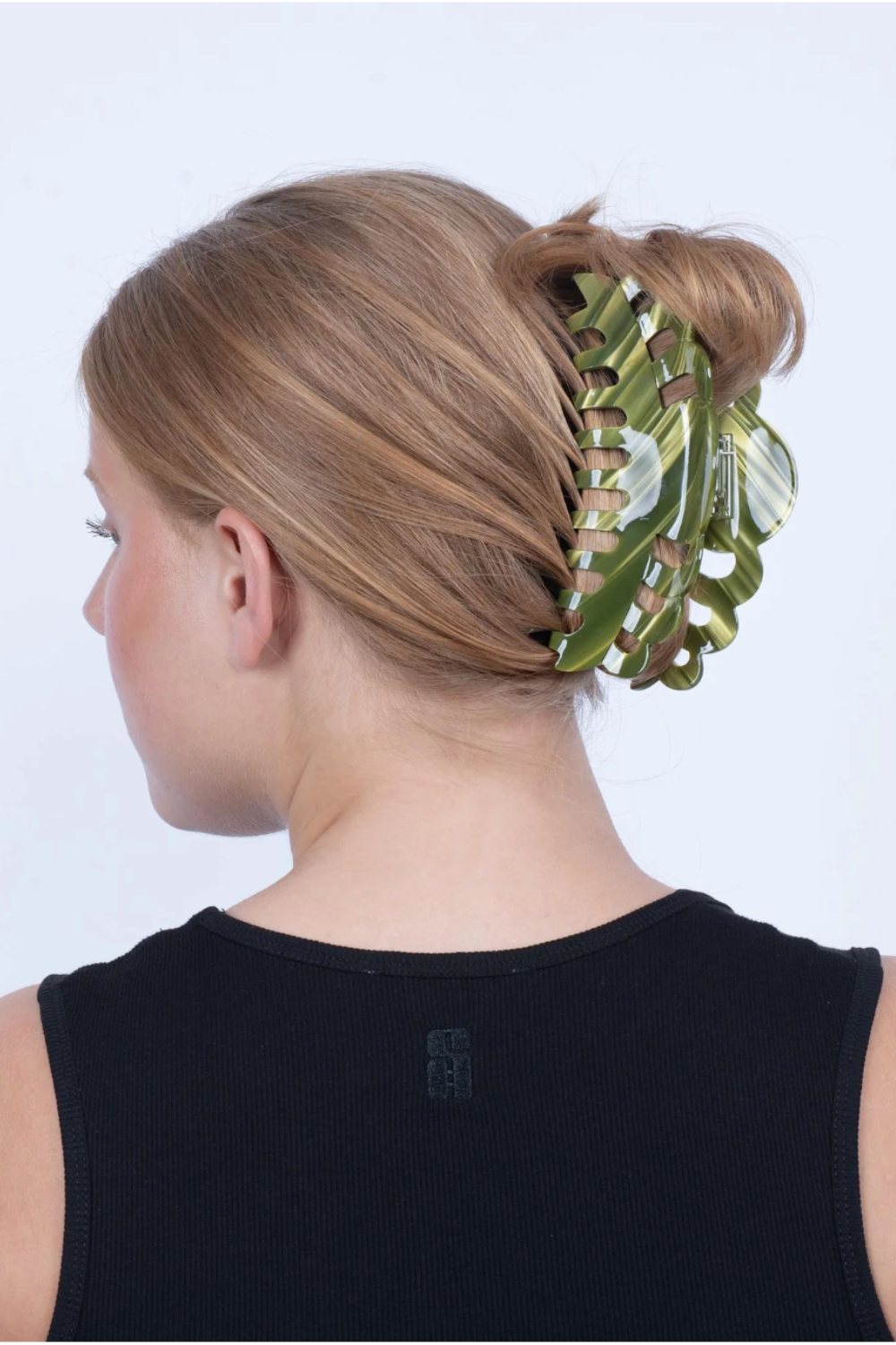 Emma Peppermint Pop Giga i farven Green fra Sui Ava er en smuk grøn hårklemme, der er perfekt til dig der har meget langt og tykt hår! Hårklemmen krammer smukt om håret med sit buede og klassiske look.