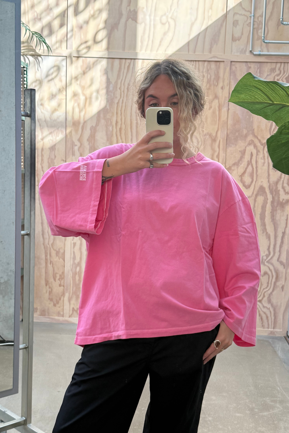 American Vintage byder på den perfekte basic med denne T-shirt. Designet i en oversize pasform med brede ærmer og rund hals, giver den et afslappet og moderne udtryk, der let kan styles til både hverdag og mere casual outfits. T-shirten er fremstillet i blød bomuld, hvilket gør den behagelig at have på hele dagen. Brug den med jeans, shorts eller lag-på-lag under en blazer for et enkelt og stilrent look.