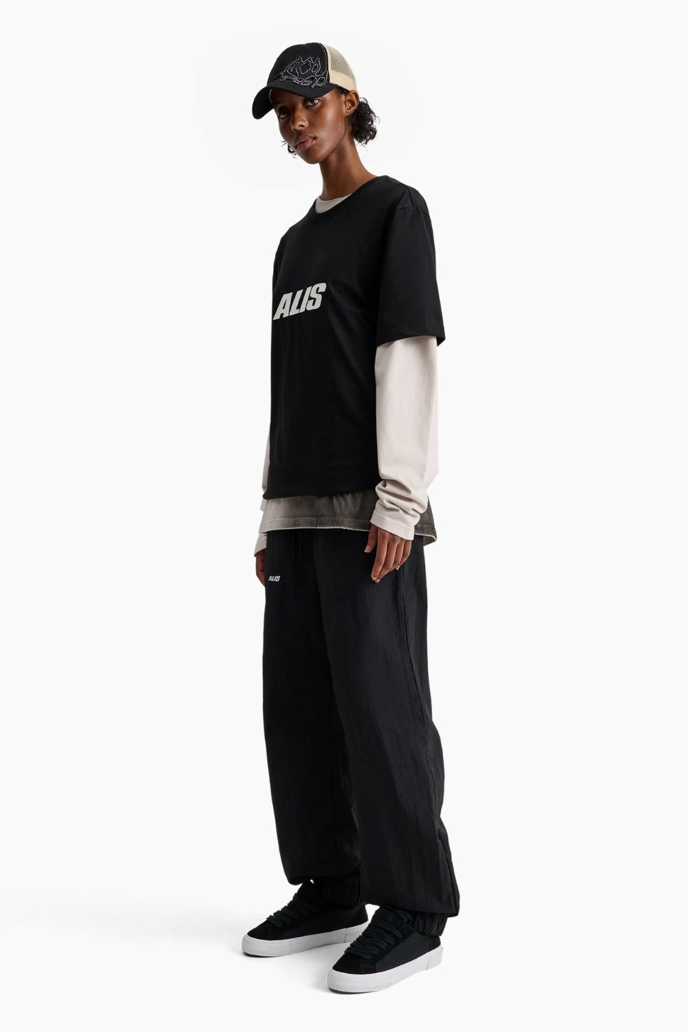 Jeron er en kortærmet jersey t-shirt i cropped fit, fremstillet i mellemvægt bomuld for komfort og holdbarhed. Den har en ribbet crewneck-krave og et stort ALIS-logo på brystet. T-shirten er unisex og har en lidt mindre pasform, så den sidder tættere.