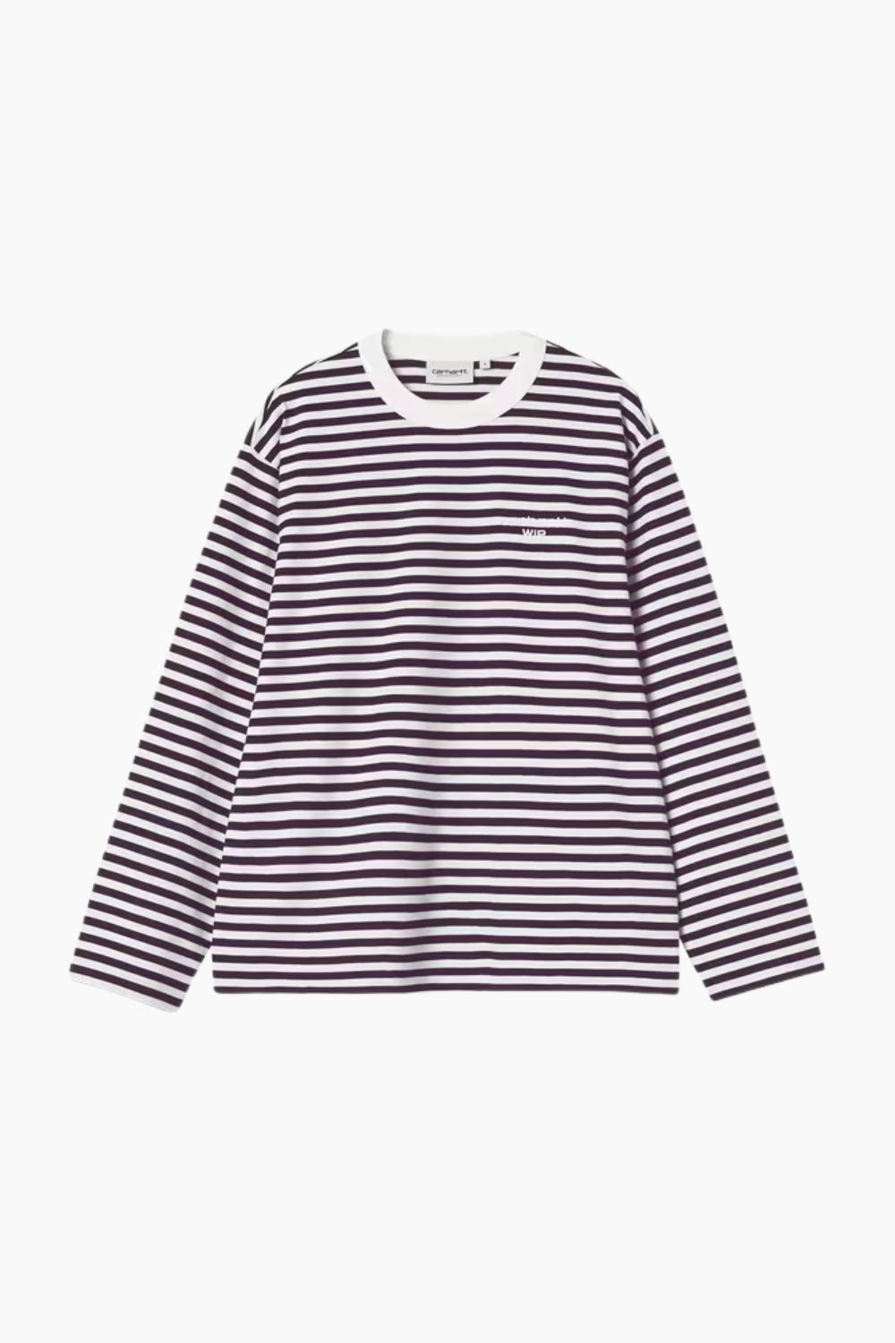 W' L/S Ezra T-Shirt Stripe - Cozy Purple - Carhartt WIP