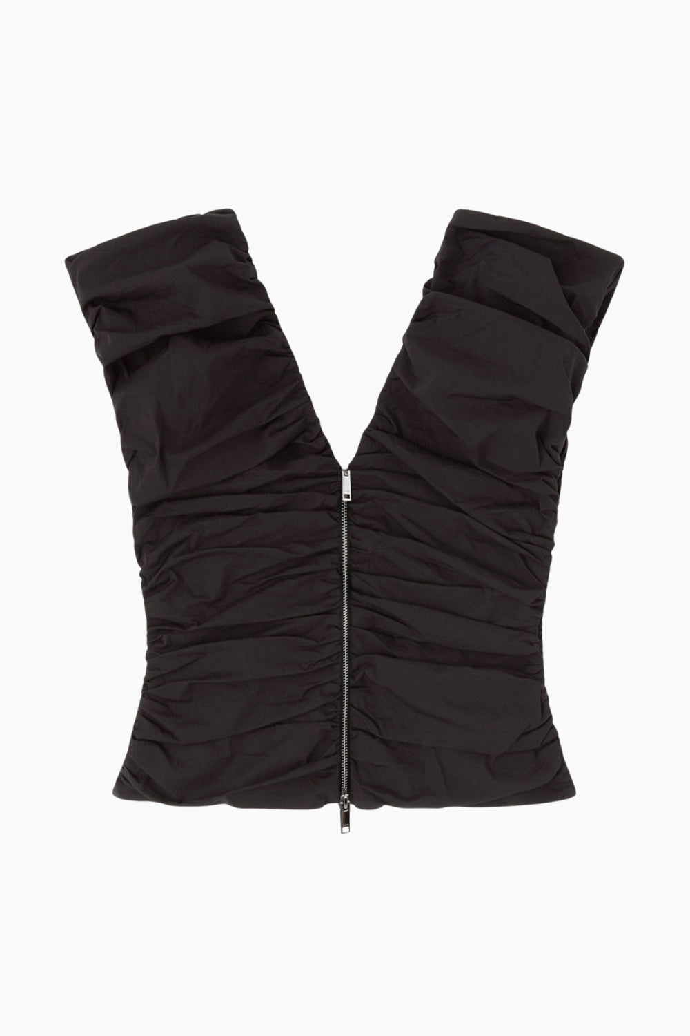 Stretch Cotton Ruched Top A1040071 - Black - GANNI