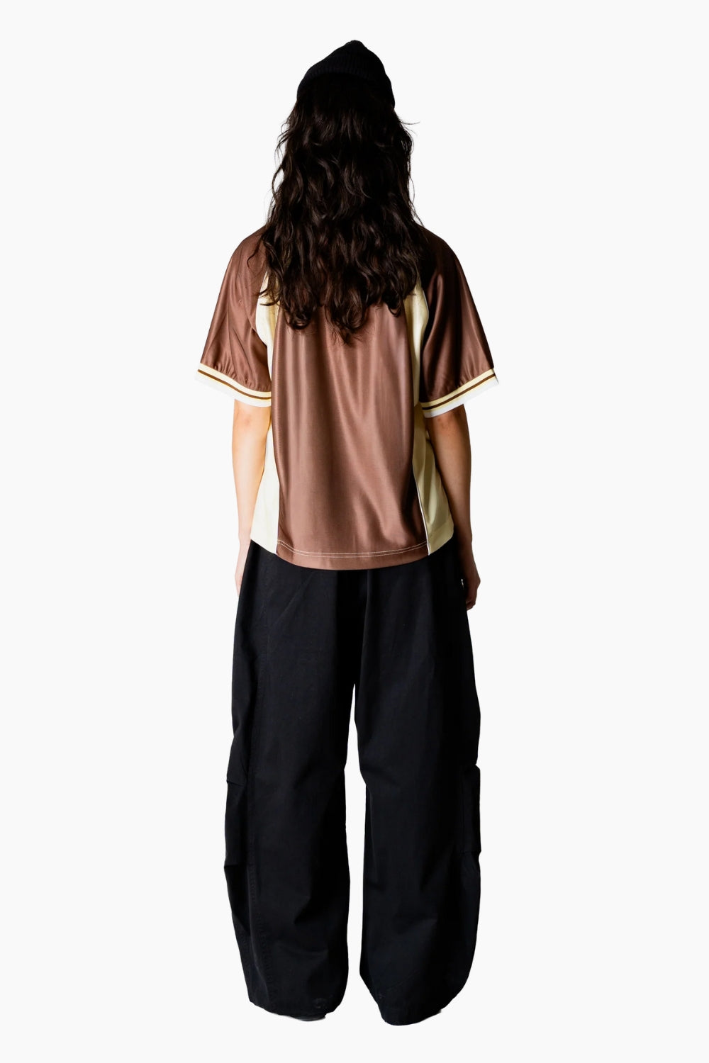 WBWaka S/S Sports Polo fra Woodbird trækker tydelige referencer til retro sport. Den dybe mid brown nuance giver et roligt og tidløst look, mens det bløde, glatte materiale og den klassiske krave skaber en enkel silhuet med kant. Det knapfri design understreger det minimalistiske udtryk og gør poloen let at style til både jeans, chinos og afslappede bukser. Det markante Woodbird-print i front samler looket og tilføjer masser af attitude.