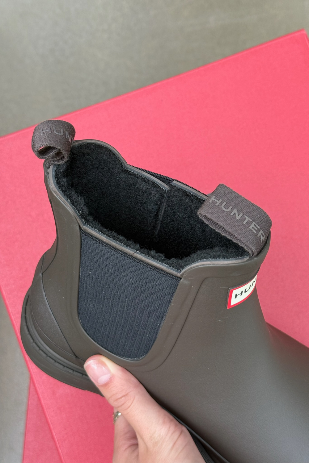 Womens Elements Chelsea Insulated Boot i farven Chocolate Brown fra Hunter er en kort og praktisk gummistøvle, der kombinerer klassisk stil med funktionelt design. Støvlen er fremstillet i 100% vandtæt naturgummi og har elastiske sidepaneler, som gør den nem at tage af og på. Indvendigt er den foret, så den holder fødderne varme og komfortable på kolde og regnfulde dage. Det ikoniske Hunter-logo på forsiden fuldender det tidløse udtryk.